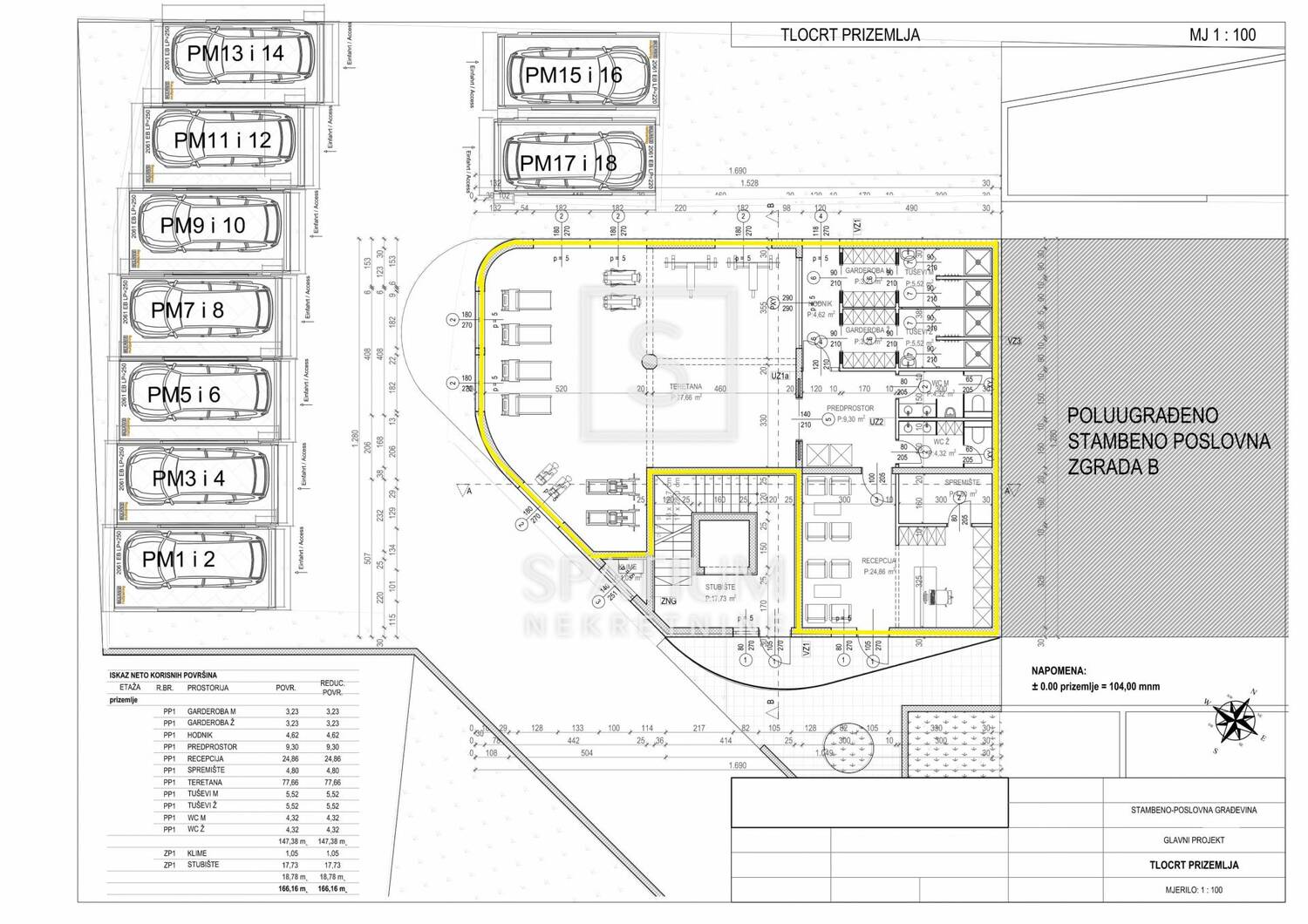 POREČ, u ponudu smo dobili atraktivan poslovni prostor smješten u prizemlju moderne stambeno-poslovne zgrade u blizini grada Poreča – jedne od najtraženijih lokacija u Istri. Prostor se prostire na 147,38 m² neto korisne površine, a njegova funkcionalna organizacija čini ga pogodnim za širok spektar poslovnih namjena.