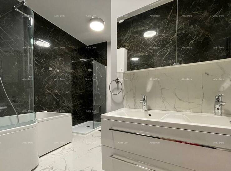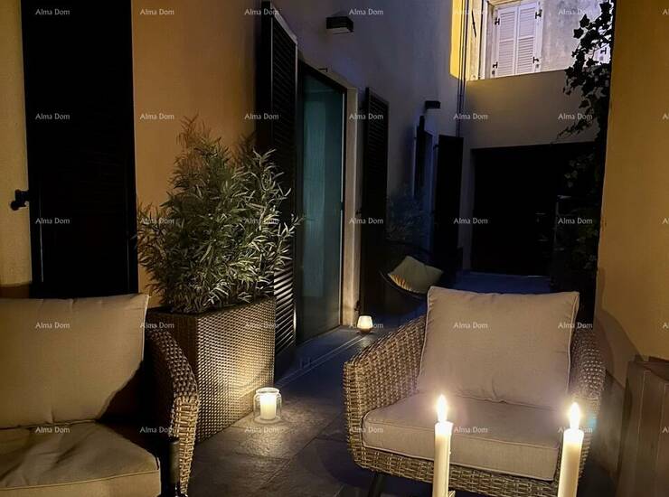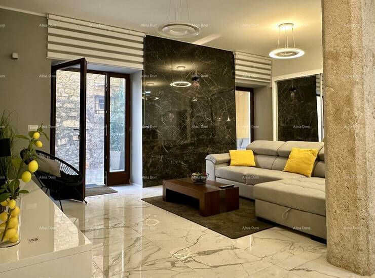 Komforan dnevni boravak s kuhinjom i blagovaonicom te izlazom na idiličnu terasu i uređeno dvorište, spavaća soba, velika kupaonica s kadom i tušem, vešeraj, podno grijanje u cijelom stanu s pristupom WIFI, komarnici na prozorima, klima u svim sobama , video portafon .