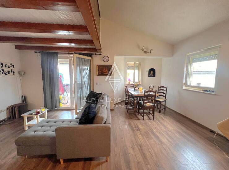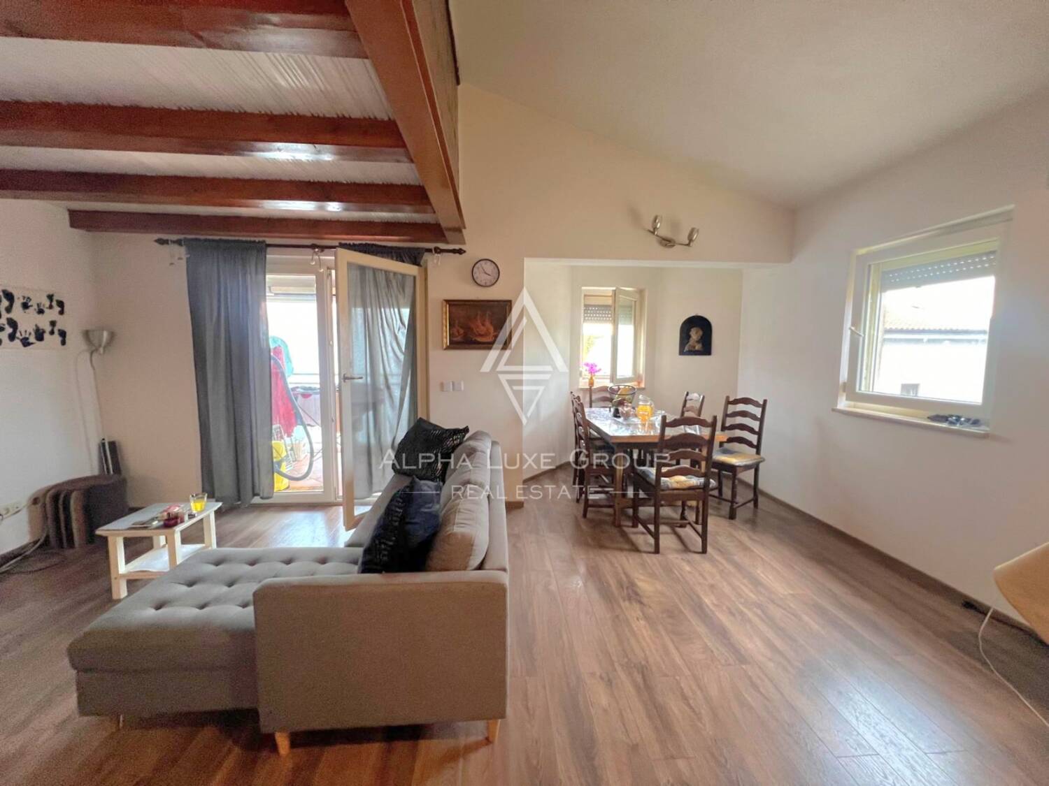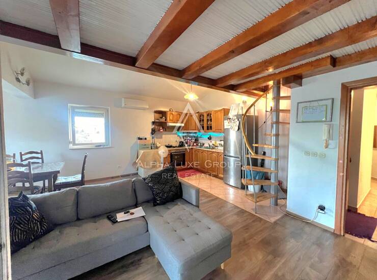 Na prodaju je dvoetažni stan površine 60 m² s dodatnom spavaćom sobom na gornjoj etaži. Nalazi se na prvom katu stambene zgrade izgrađene 2007. godine, u mirnoj i ugodnoj Novoj Vasi, svega nekoliko minuta vožnje od Poreča i mora.