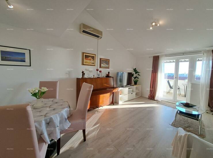 Na prodaju je predivan penthouse smješten na 4. katu stambene zgrade, u neposrednoj blizini mora i centra Poreča, potpuno renoviran 2023. godine.