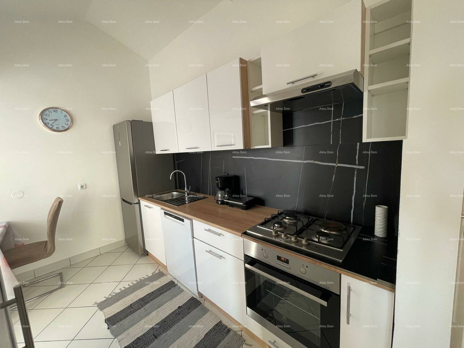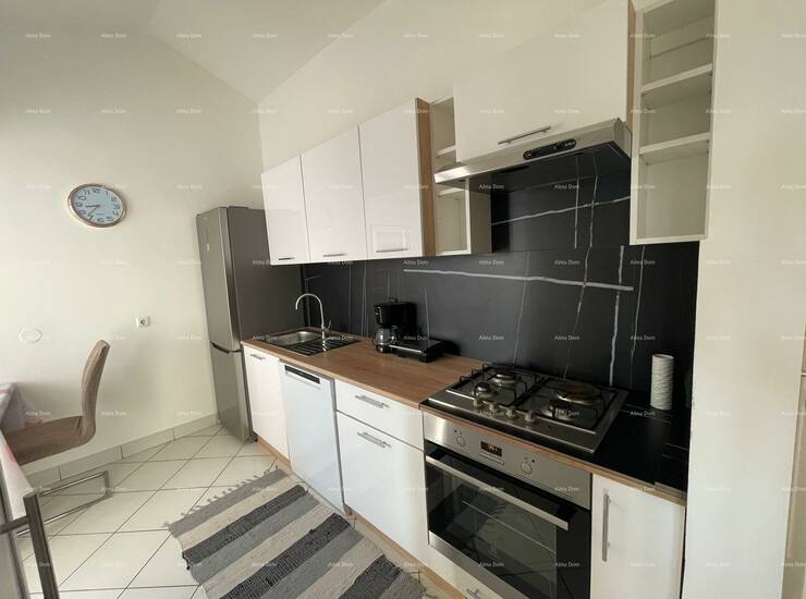 Stan sadrži: 3 prostrane spavaće sobe, dnevni boravak, odvojenu kuhinju s blagavaonom, moderno uređenu kupaonicu u crno-bijeloj kombinaciji s kadom i perilicom rublja, veliki balkon s prekrasnim panoramskim pogledom na more i grad Poreč, galeriju na drugoj etaži, idealnu kao dodatni prostor za spavanje, ured ili spremište.