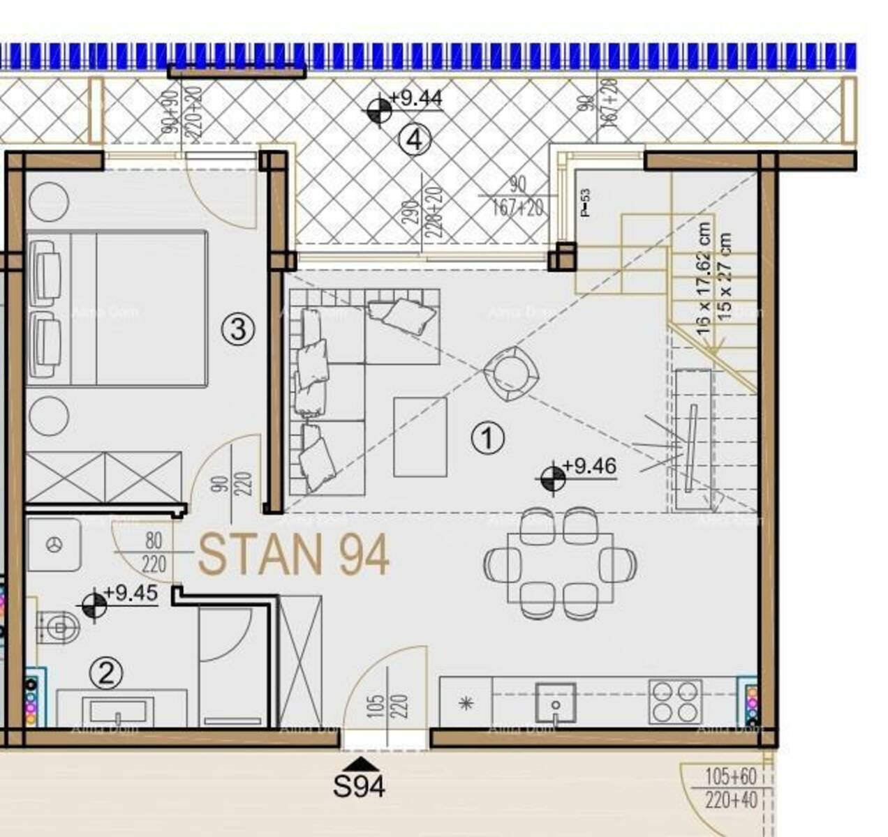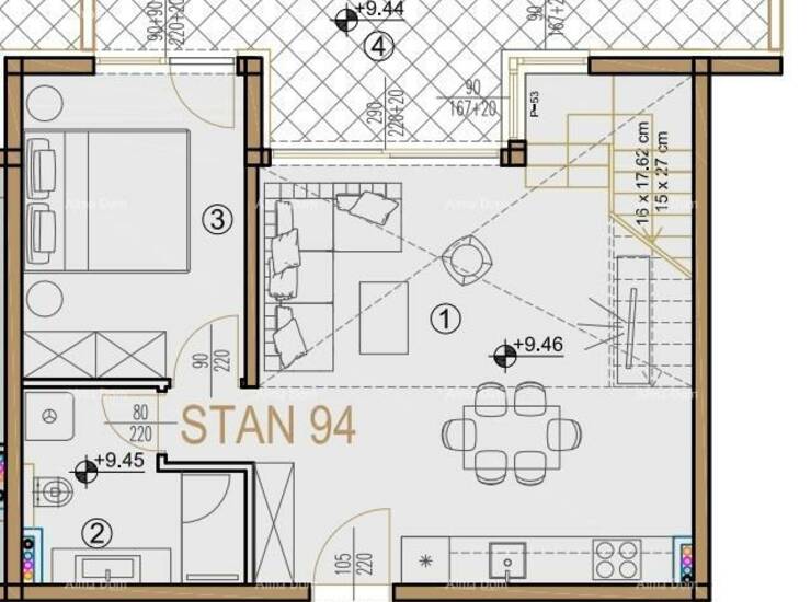 Ukupna neto površina stana je 96,71m2.