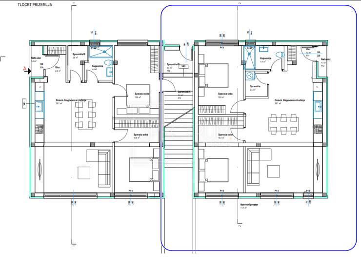 Stan se nalazi u prizemlju manje stambene zgrade sa 4 stambene jedinice. Površina stana iznosi 76 m2. Stan se sastoji od ulaznog hodnika, dnevnog boravka sa kuhinjom i blagovaonicom open space koncepta, 2 spavaće sobe, kupaonice i ostave. Grijanje je regulirano putem podnog grijanja i klima uređaja. Stan se prodaje u fazi ključ u ruke (završeni podovi i sanitarije, bez namještaja). U gradnji su korišteni vrlo kvalitetni materijali. Stan karakteriziraju velike staklene stijene koje omogućavaju veliku dozu prirodne svjetlosti i stvaraju dojam otvorenosti prostora.