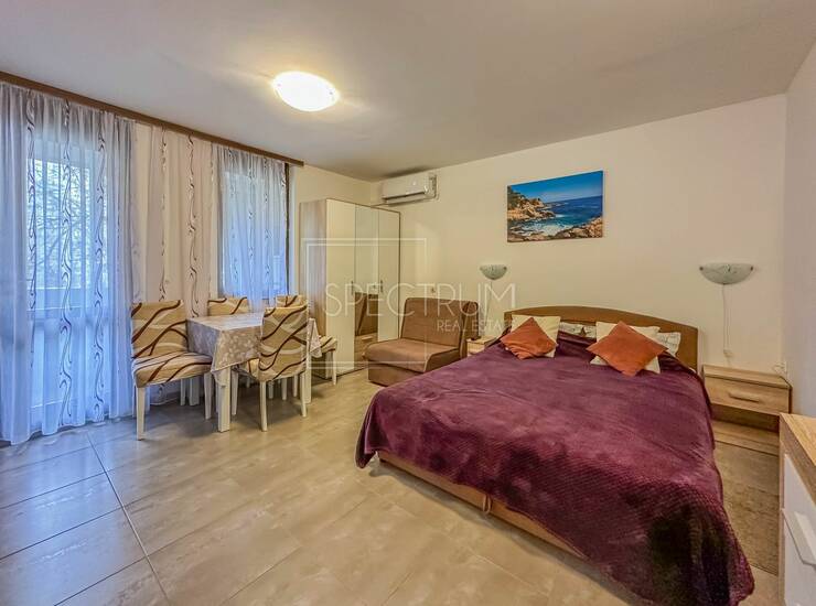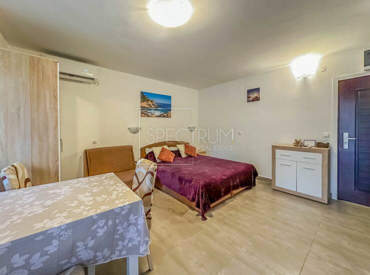 Stan se nalazi na 1.katu stambene zgrade, a površina stana iznosi 30 m2. Stan se sastoji od dnevnog boravka zajedno sa kuhinjom i blagovaonicom open space koncepta, spavaće sobe, kupaonice i natkrivenog balkona. Sa balkona se pruža pogled na park. Grijanje je regulirano putem klima uređaja. Stan je renoviran 2020.godine, uključujući i instalacije, a kupaonica je renovirana 2023.godine. Stan se prodaje namješten.