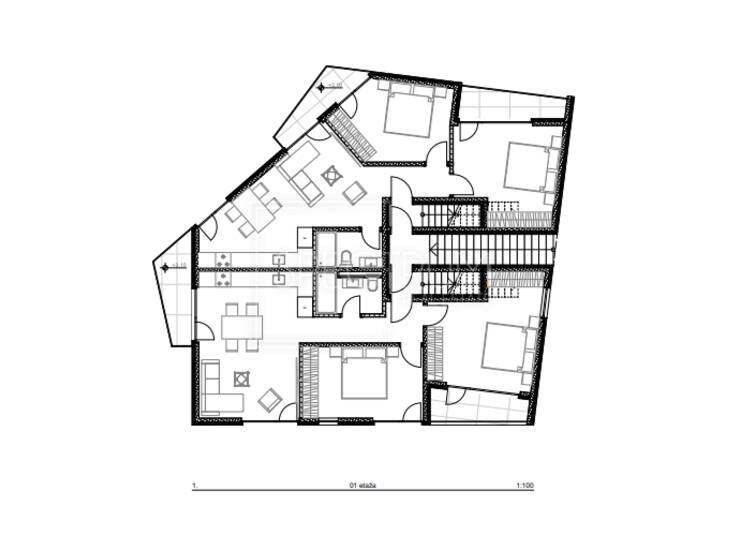 Stan se nalazi na 1.katu novoizgrađene stambene zgrade sa 5 stambenih jedinica. Stambena površina iznosi 73.09 m2. Stan se sastoji od ulaznog hodnika, dnevnog boravka sa kuhinjom i blagovaonicom open space koncepta, 2 spavaće sobe, kupaonice i 2 balkona. Na jedan balkon se izlazi iz dnevnog boravka, a na drugi balkon se izlazi iz spavaćih soba. Stanu pripada i prostrana krovna terasa sa pogledom na prirodu i zelenilo. Grijanje je regulirano putem klima uređaja. Stan se prodaje u fazi ključ u ruke (završeni podovi i sanitarije, bez namještaja).