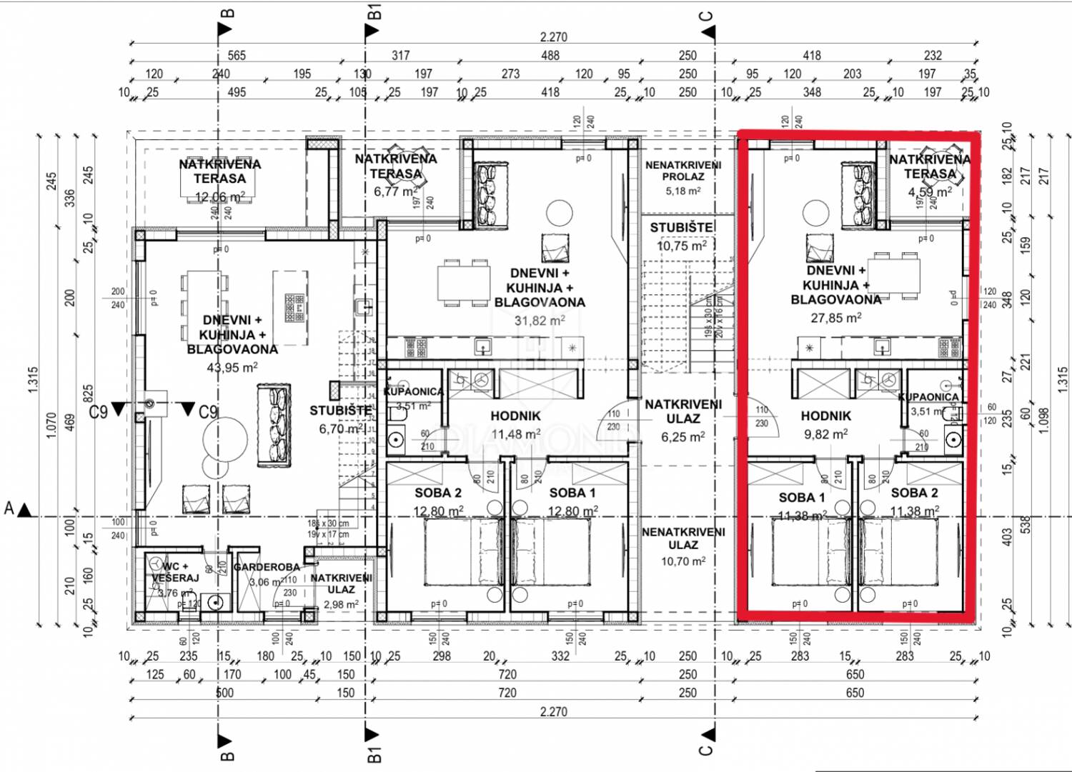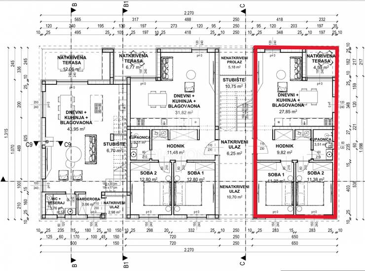 Stan ima ukupno 77,5 m² stambene površine te dodatnu vrijednost u obliku 40 m² privatne okućnice, što je prava rijetkost na ovakvoj lokaciji. Vanjski prostor pruža mogućnost uređenja terase, vrta ili zone za opuštanje i druženje.