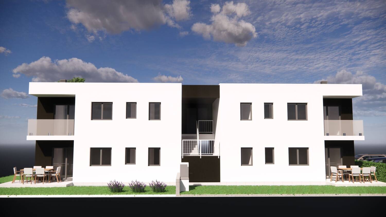 Prodaje se stan na prvom katu moderne novogradnje. Stambena površina je 61,60m2 plus terasa od 4.26m2. Stan se sastoji od ulaznog hodnika, kuhinje s blagovaonom i dnevnim boravkom po open space konceptu, dvije spavaće sobe i kupaone. Dnevni prostor ima izlaz na natkrivenu terasu.