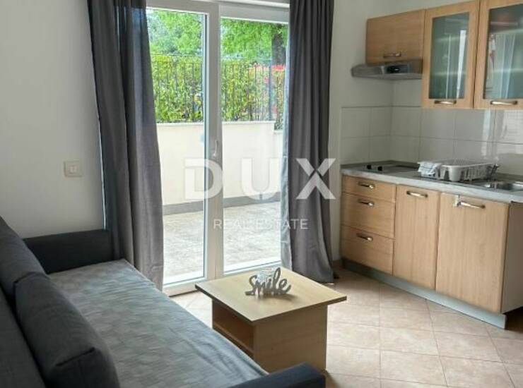 Na vrhunskoj lokaciji u Poreču, 600 metara od predivnih plaža prodaje se stan u prizemlju zgrade ukupne stambene površine 39,66m2. Sastoji se od ulaznog hodnika, dnevnog boravka spojenog s blagovaonicom, kuhinjom, jedna spavaća soba, kupaonice te terase na koju se izlazi iz dnevnog boravka. Nekretnina je opremljena s jednom i klimom koje služe za grijanje i hlađenje stambenog prostora. Stan ne zahtjeva bilo kakva dodatna ulaganja. U zgradi je svega nekoliko stanara(samo preko ljeta) što budućim vlasnicima osigurava mir i tišinu. Stan se prodaje u cijelosti namješten kako je to vidljivo na slikama.