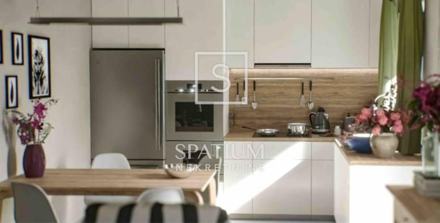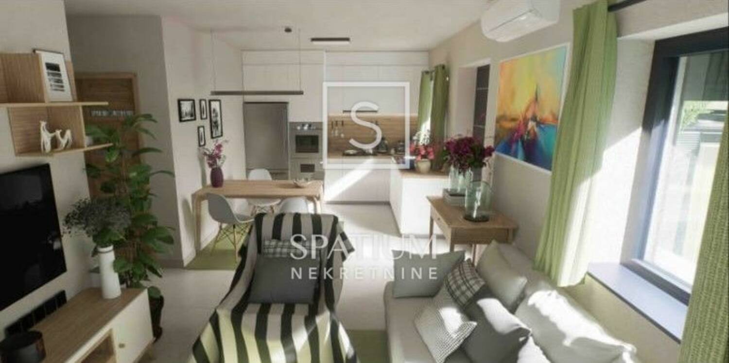Stan se sastoji od otvorenog dnevnog boravka s kuhinjom i blagovaonicom, dvije spavaće sobe, dvije kupaonice te natkrivene vanjske terase s izlazom u privatni vrt.
