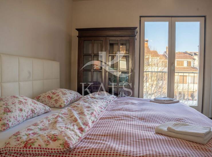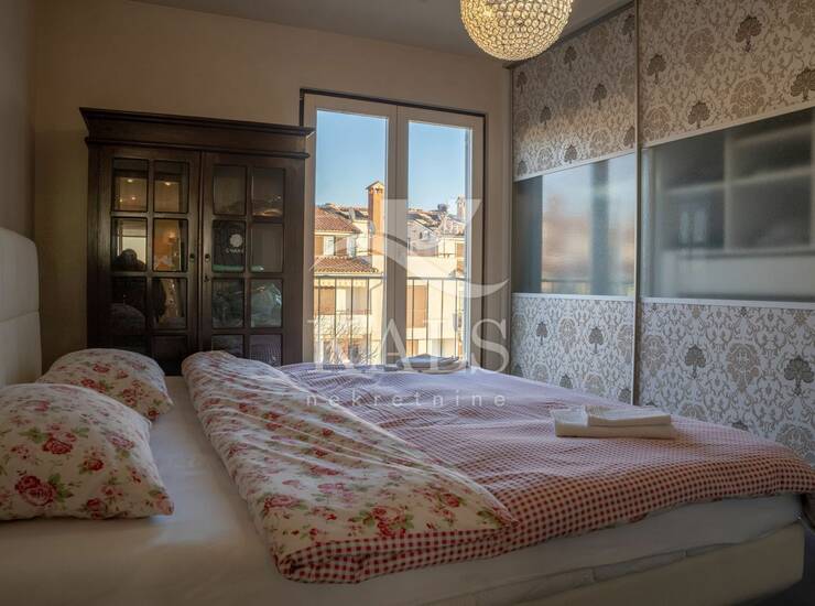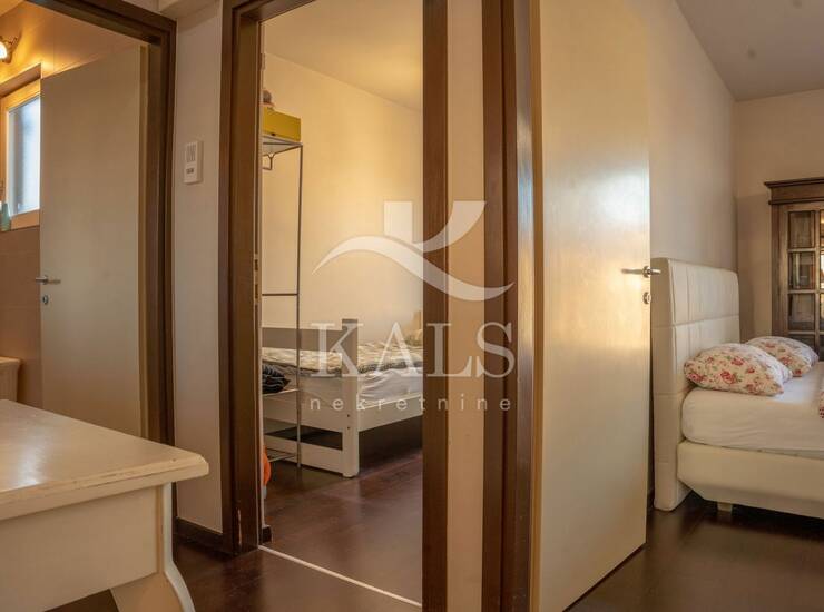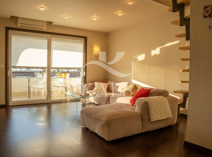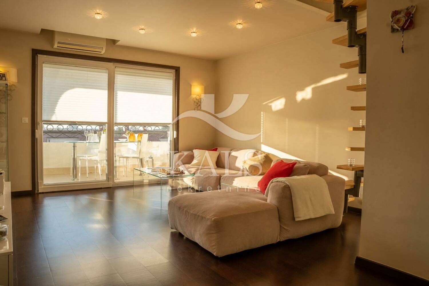Stan je kompletno, detaljno adaptiran i renoviran izrazito kvalitetnim materijalima 2023. godine. Sastoji se od prostranog dnevnog boravka s izlazom na balkon, odvojene kuhinje i blagovaonice, dvije spavaće sobe, kupaonice s walk-in tušem i WC-om.