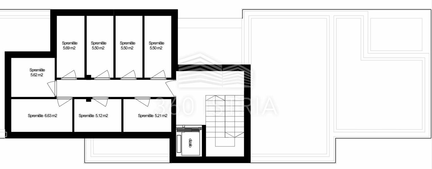 Uz stan dolaze i dodatne pogodnosti: spremište od 5,12 m² u podrumu te dva vanjska parkirna mjesta.