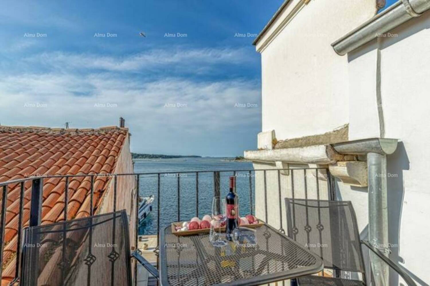 Iz stana se izlazi na terasu s koje se pruža zadivljujući pogled na more.