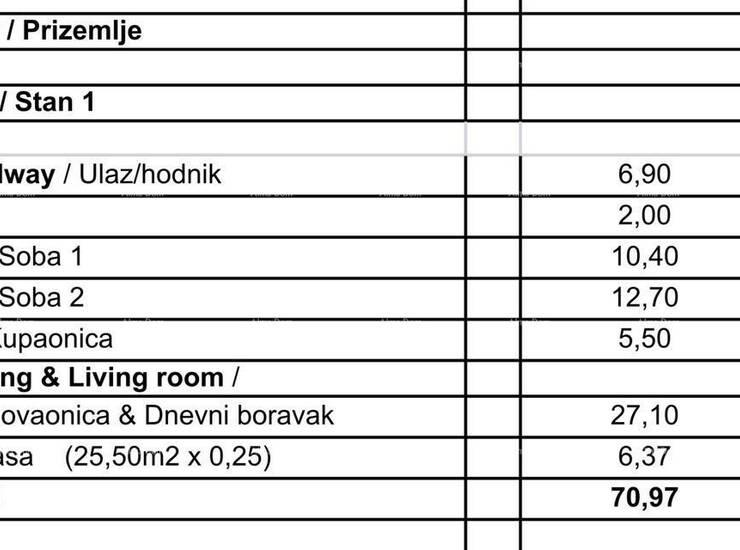 Stan površine 70.97 m2 nalazi se u prizemlju zgrade.