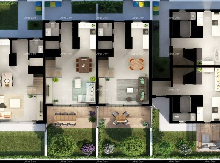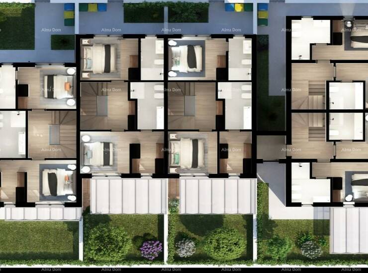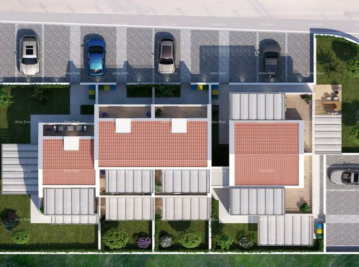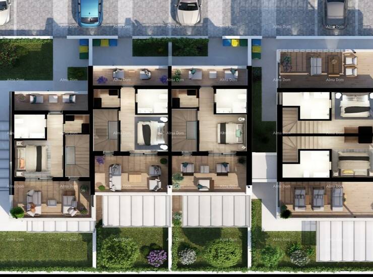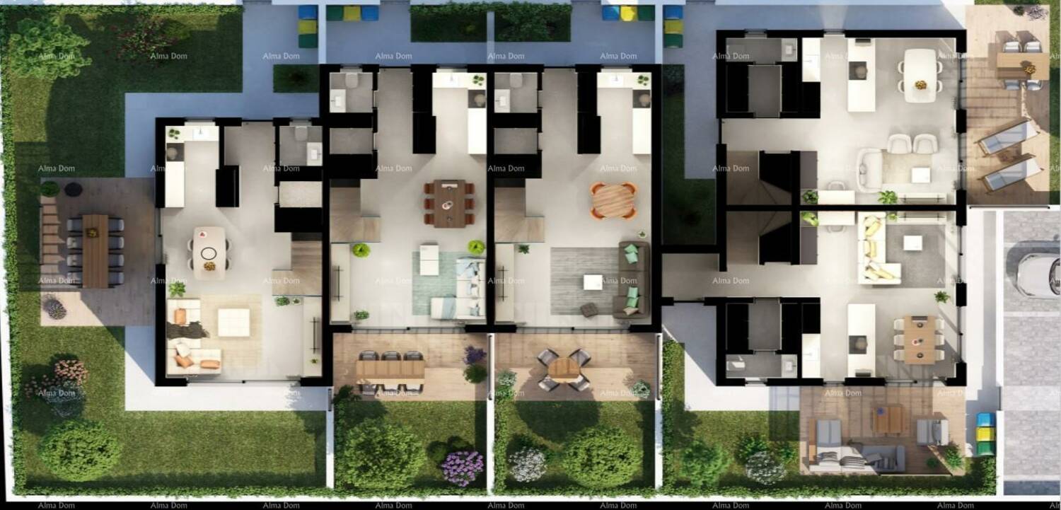 Stan je dio kuća u nizu gdje svaki stan ima svoj vlastiti ulaz, vrt i parking.