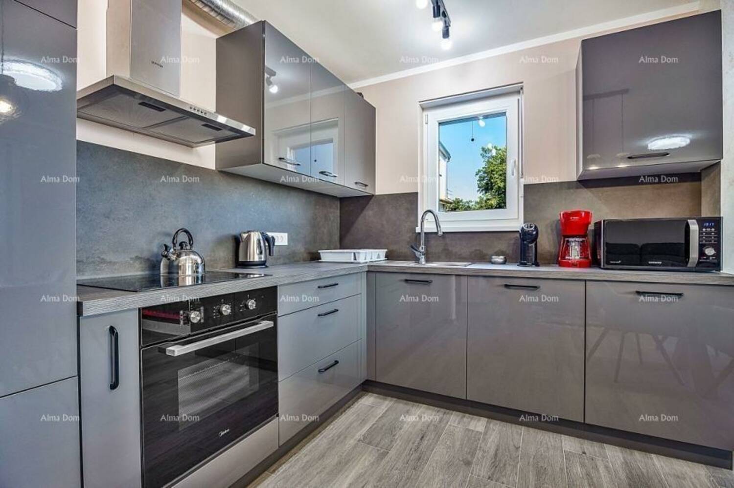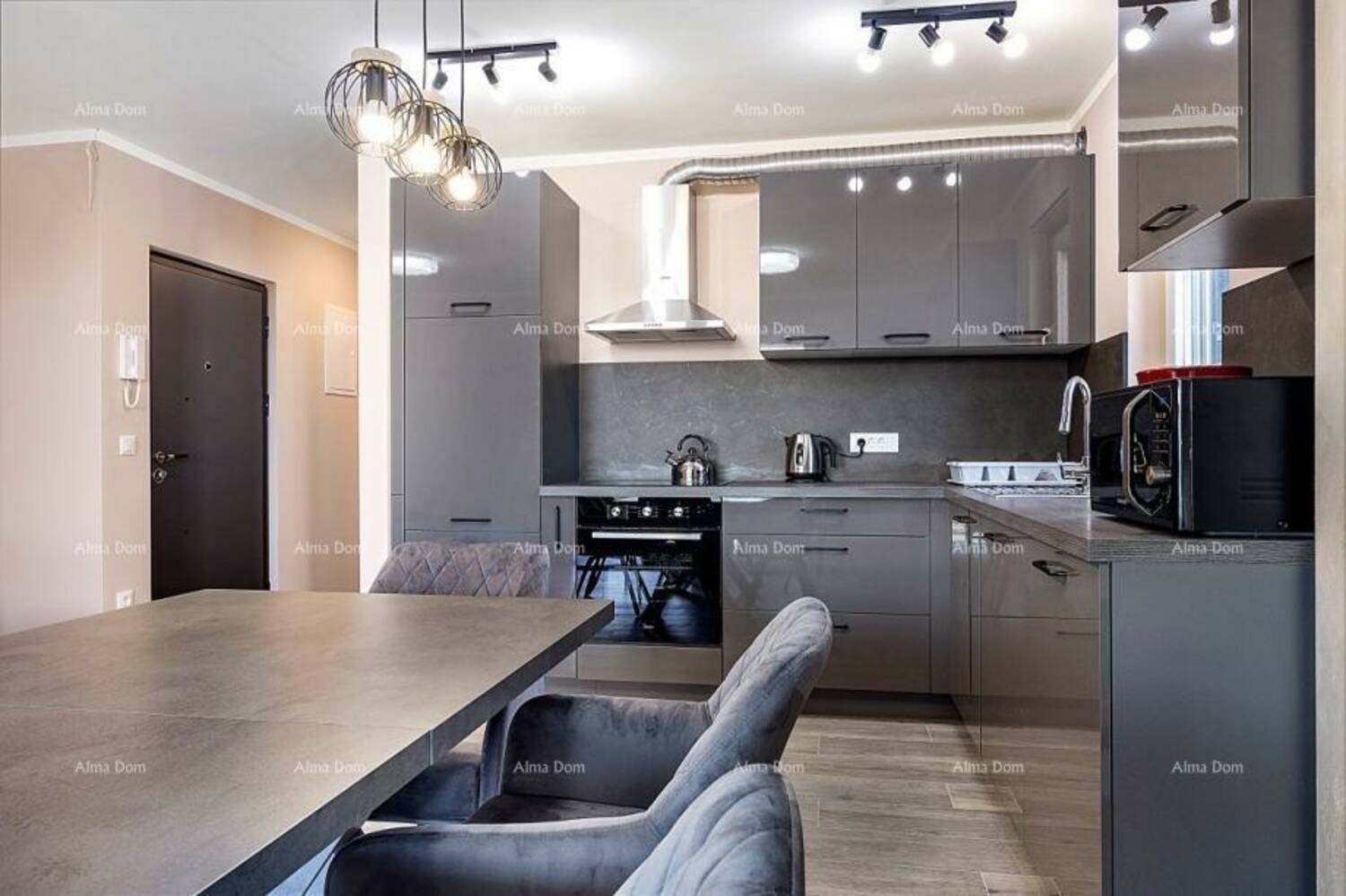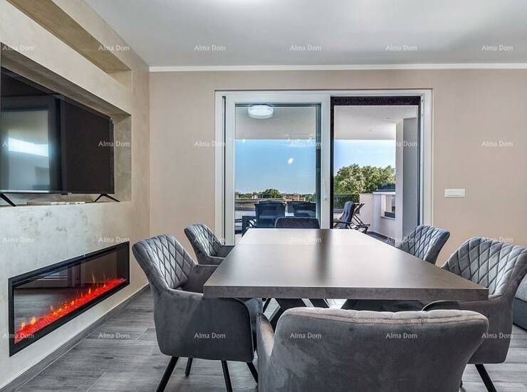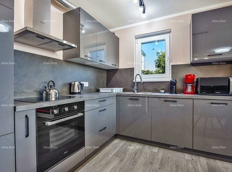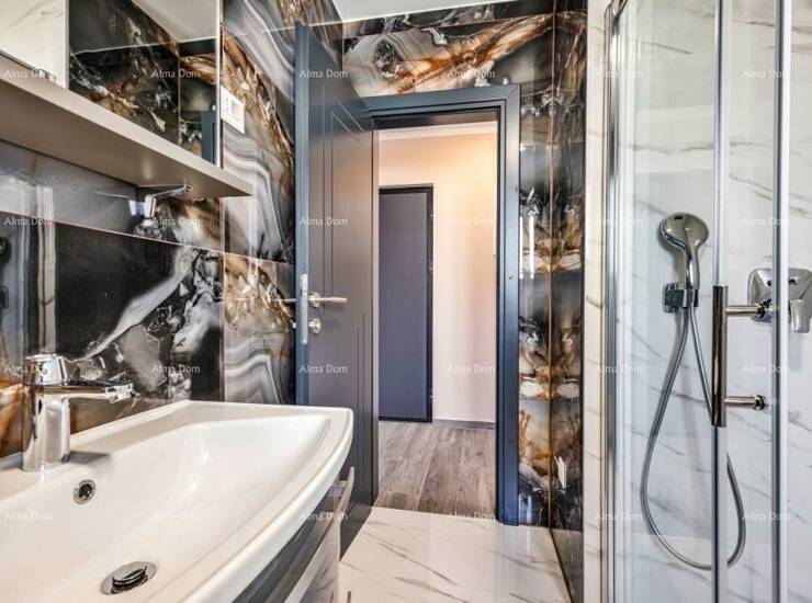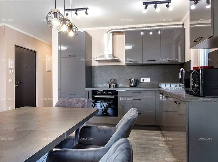 Stan je opremljen protuprovalnim vratima, alarm sustavom, video portafonom, električnim roletama i podnim grijanjem.