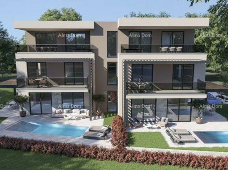 Prodajemo luksuzni dvoetažni stan u Taru, udaljen 3 km od mora, neto površine 124.82 m². Stan ima dvije etaže. Na prvom katu se nalazi predsoblje, spavaća soba sa kupaonicom, garderoba i praonica sa toaletom. Unutarnje stepenište vodi na drugu etažu stana , gdje se nalazi prostrani dnevni boravak, kuhinja i blagovaonica sa izlazom na natkrivenu terasu i, dvije spavaće sobe i dvije kupaonice. Sa terase se pruža prekrasan pogled na more.