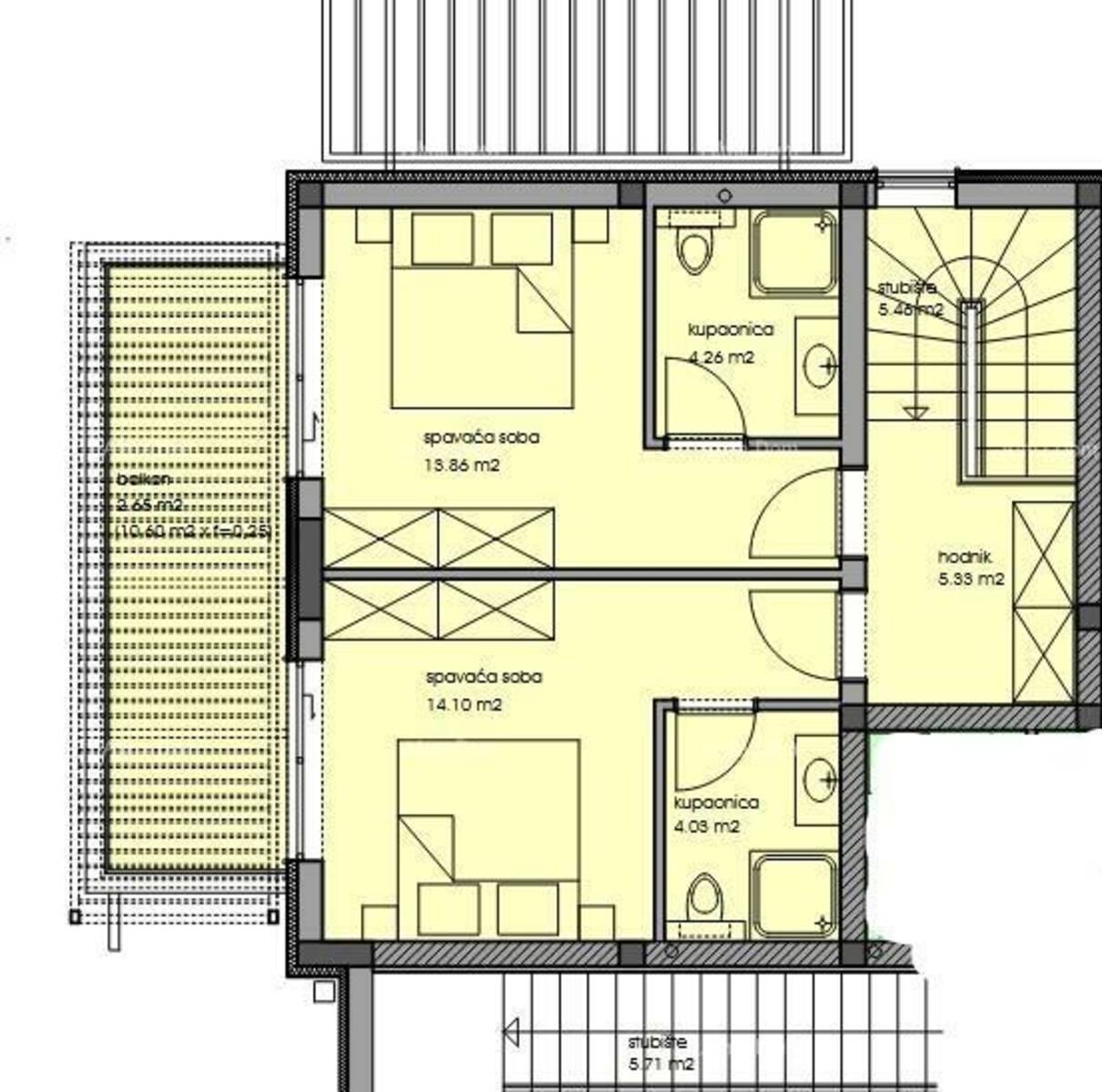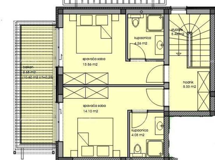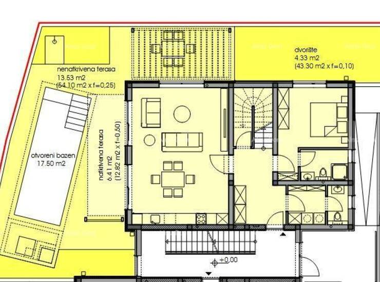 - dvorišna terasa 54,10 x 0,20 = 10,82 m2