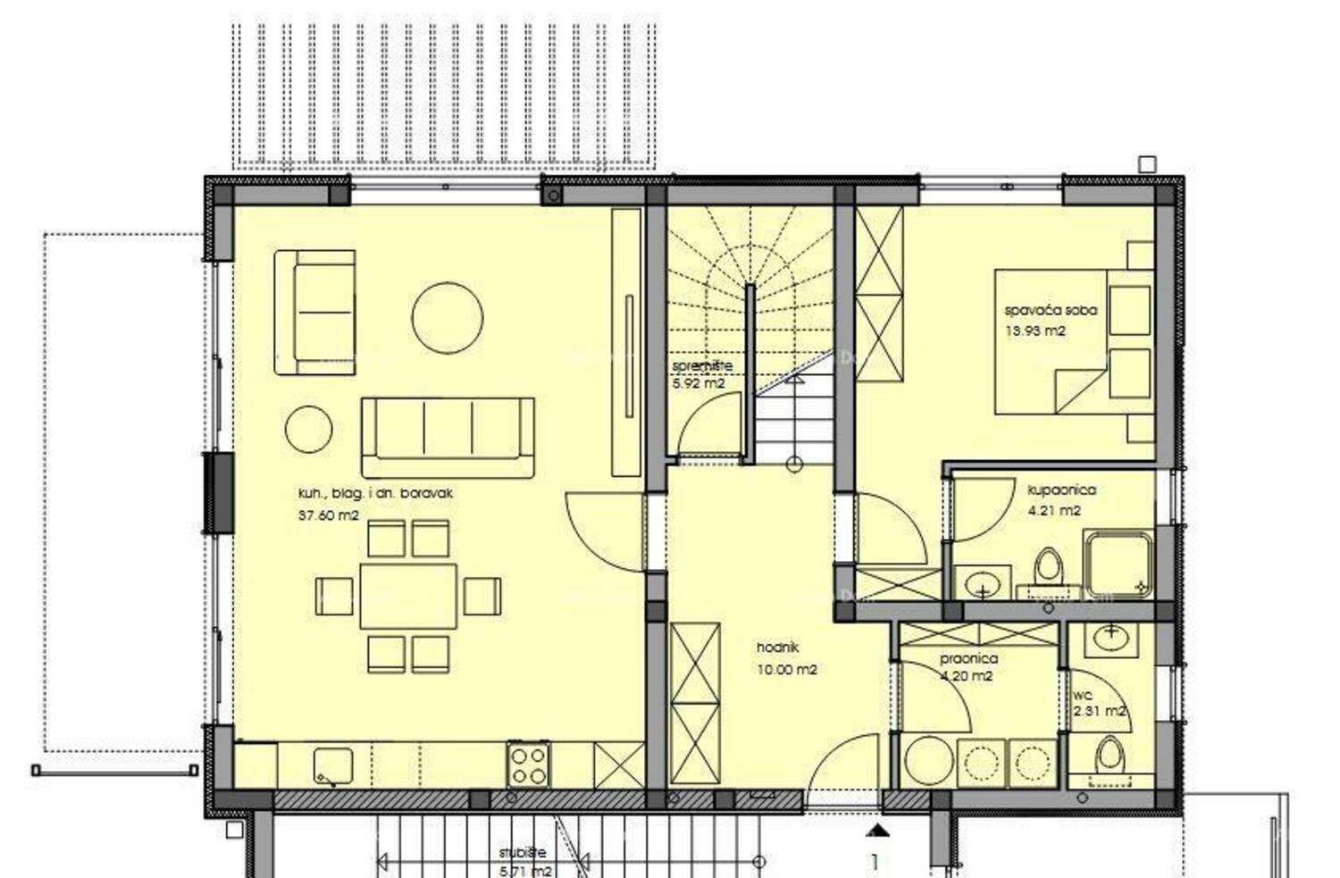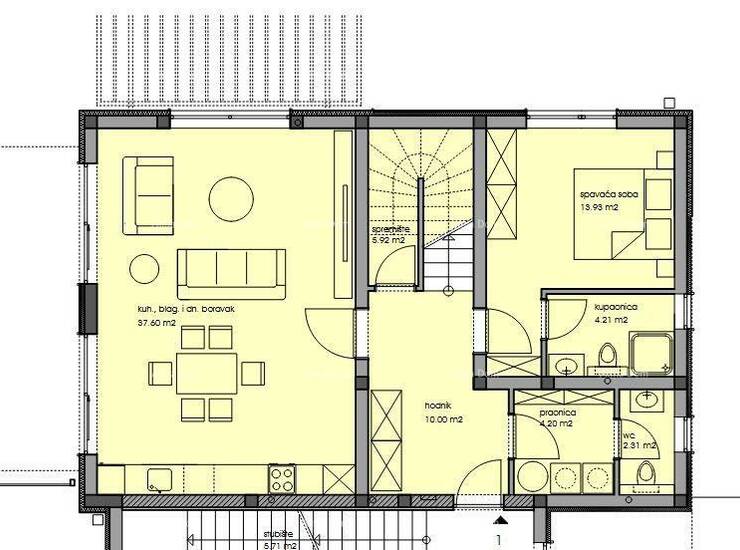 - kuhinja, blagovaona i dnevni boravak 37.60m2