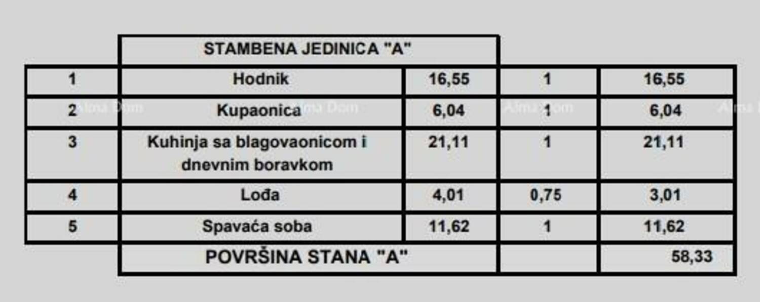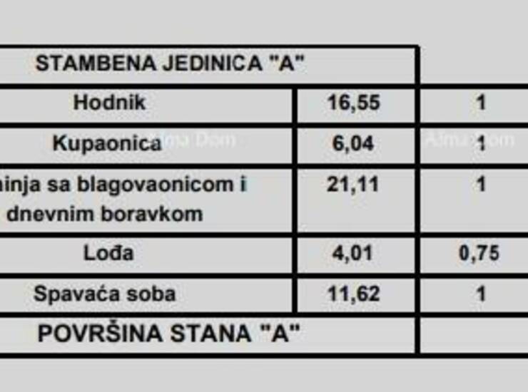 Stan A, sastoji se od ulaznog hodnika, dnevnog boravka s kuhinjom i blagovaonom, spavaće sobe, kupaone i lođe.