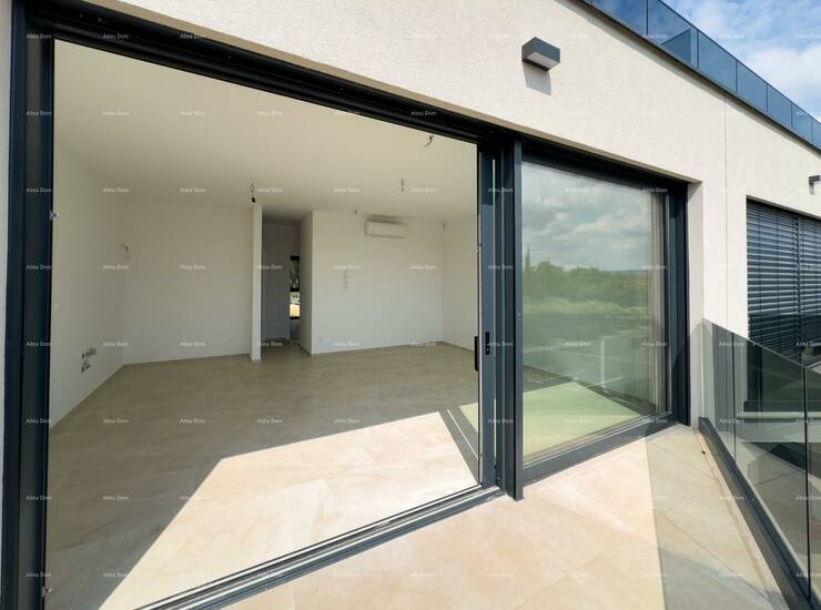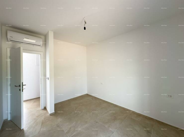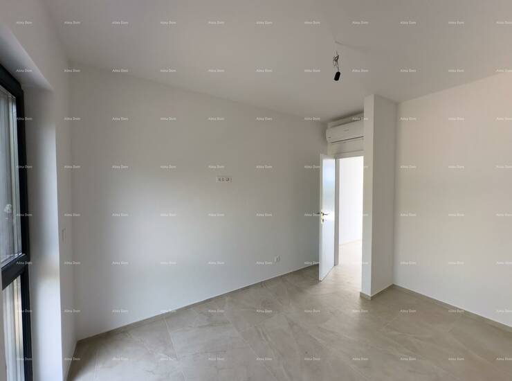 Stan se nalazi na prvom katu nove zgrade i sastoji se od dvije spavaće sobe, kupatila, kuhinje, blagovaonice i dnevnog boravka iz kog se izlazi na manju terasu.