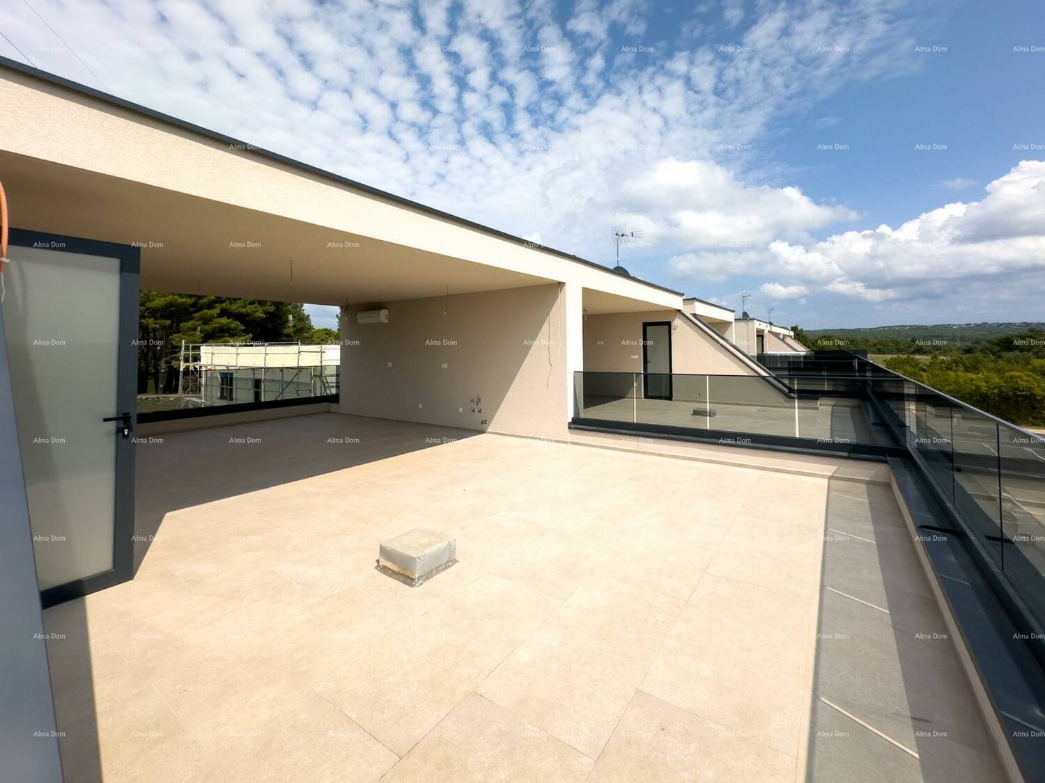 Iz dnevnog boravka izlazi se na unutarnje stepenice koje vode na natkrivenu krovnu terasu gdje su izvedene sve instalacije vode i struje za ljetnju kuhinju, instalacije za Jacuzzi te postoji i kupatilo.