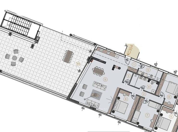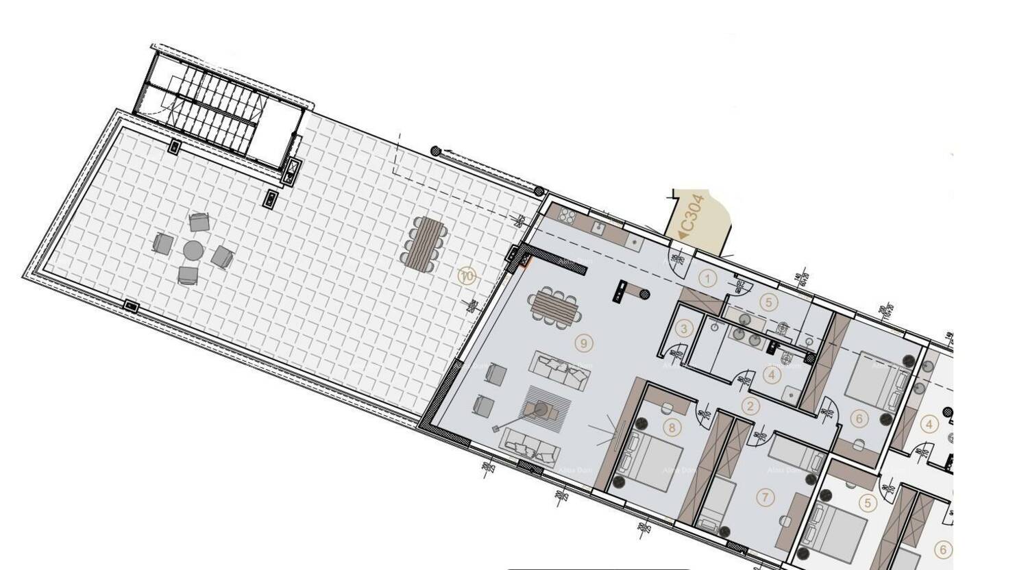 Dakle, stan ima tlocrtnu površinu od 270 m2 od kojih stambeni zatvoreni dio je 132.95 m2, a ostalo je terasa s prekrasnim pogledom na more od 180 stupnjeva.