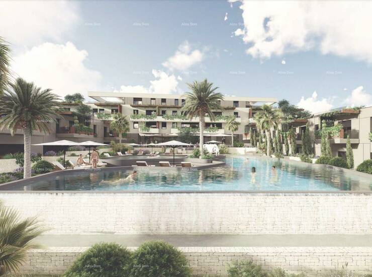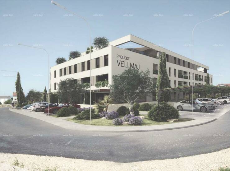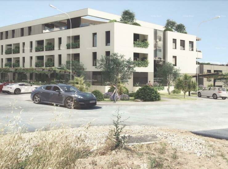 Zgrada stambeno-poslovne namjene, podijeljena je u tri jedinice, centralni, južni i sjeverni volumen. Ukupno će imati 78 stanova i 18 poslovnih jedinica. U objektu se nalazi bazen i podzemna garaža, gdje stanu pripada i garažno parkirno mjesto, uključeno u cijenu.