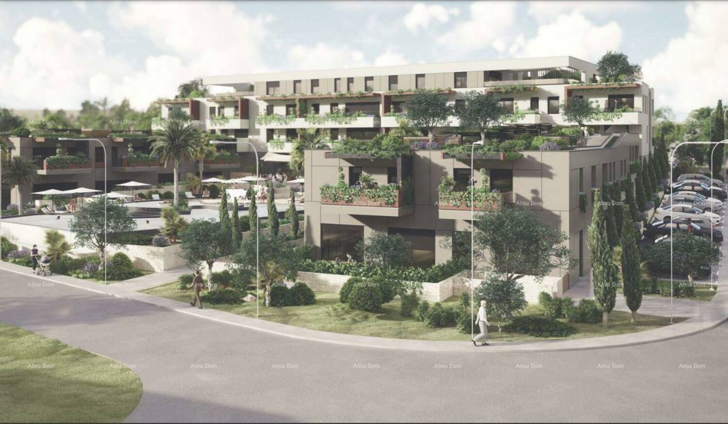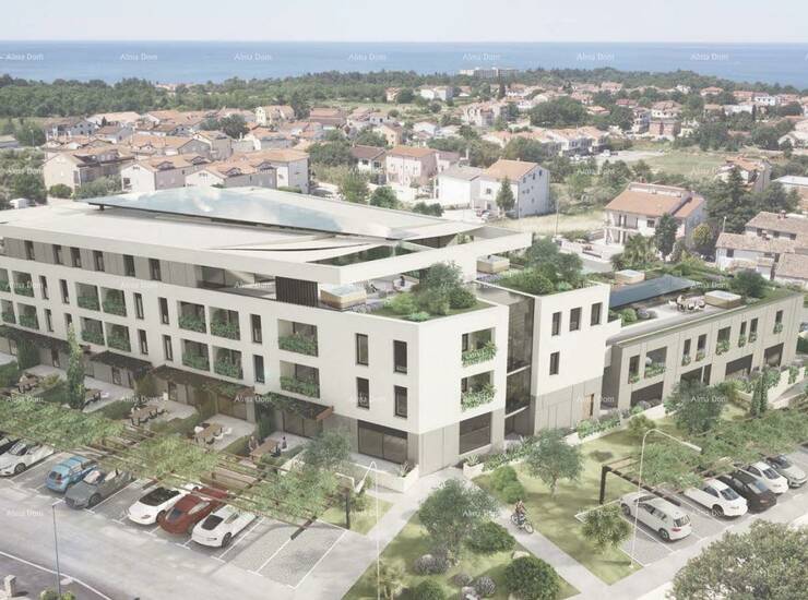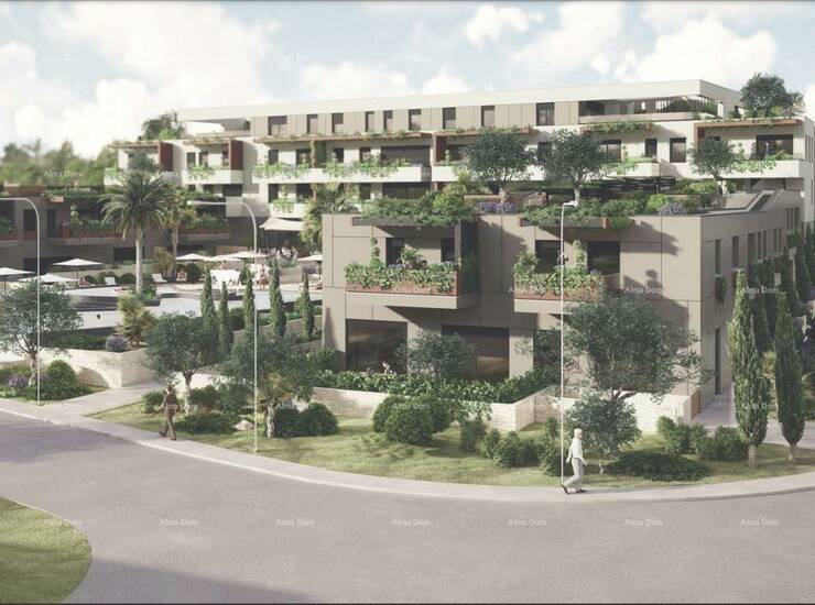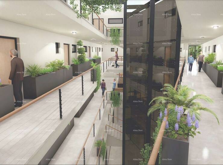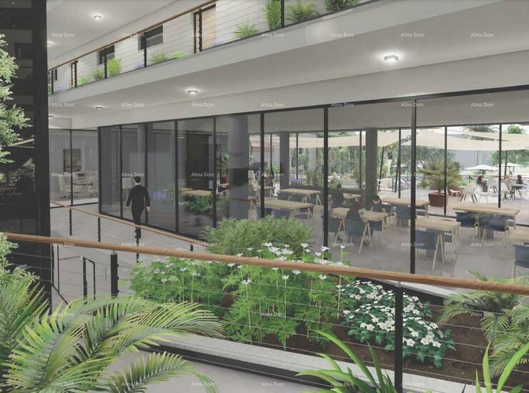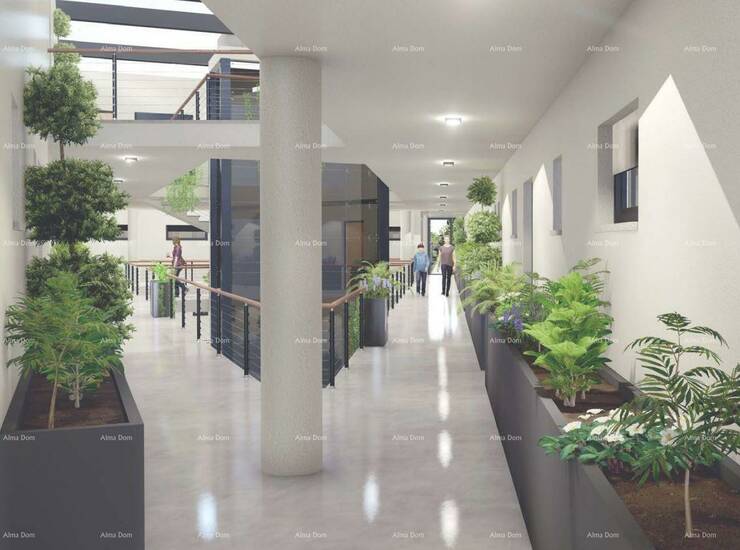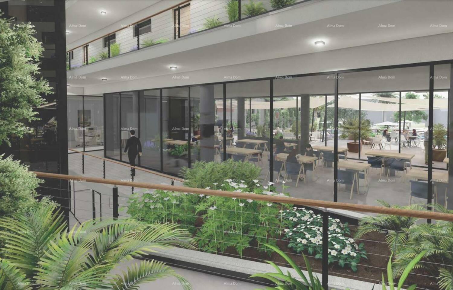 Zgrada stambeno-poslovne namjene, podijeljena je u tri jedinice, centralni, južni i sjeverni volumen. Ukupno će imati 78 stanova i 18 poslovnih jedinica. U objektu se nalazi bazen i podzemna garaža, gdje stanu pripada i garažno parkirno mjesto, uključeno u cijenu.