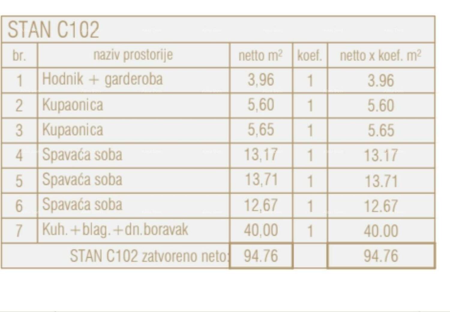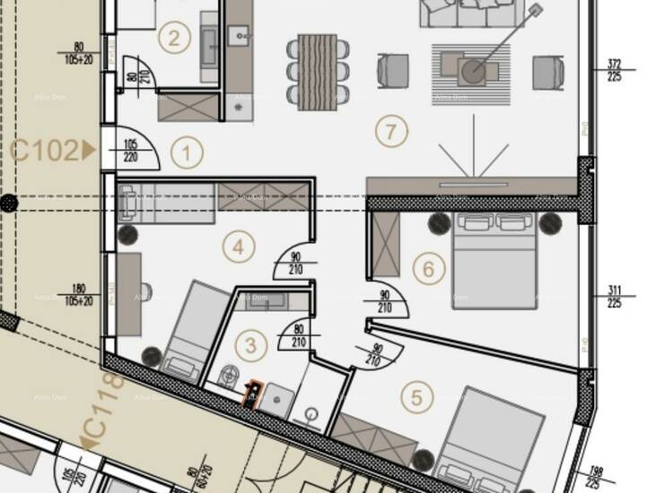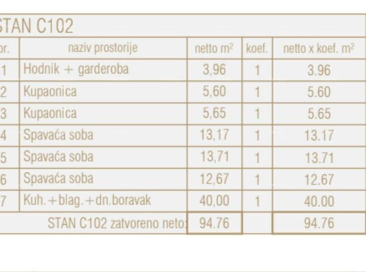 Stan C102, nalazi se na 1.katu centralne jedinice zgrade i sastoji se od: