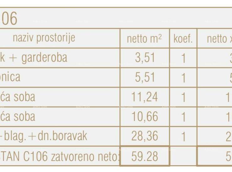 Stan C106, nalazi se na 1.katu centralne jedinice zgrade i sastoji se od: