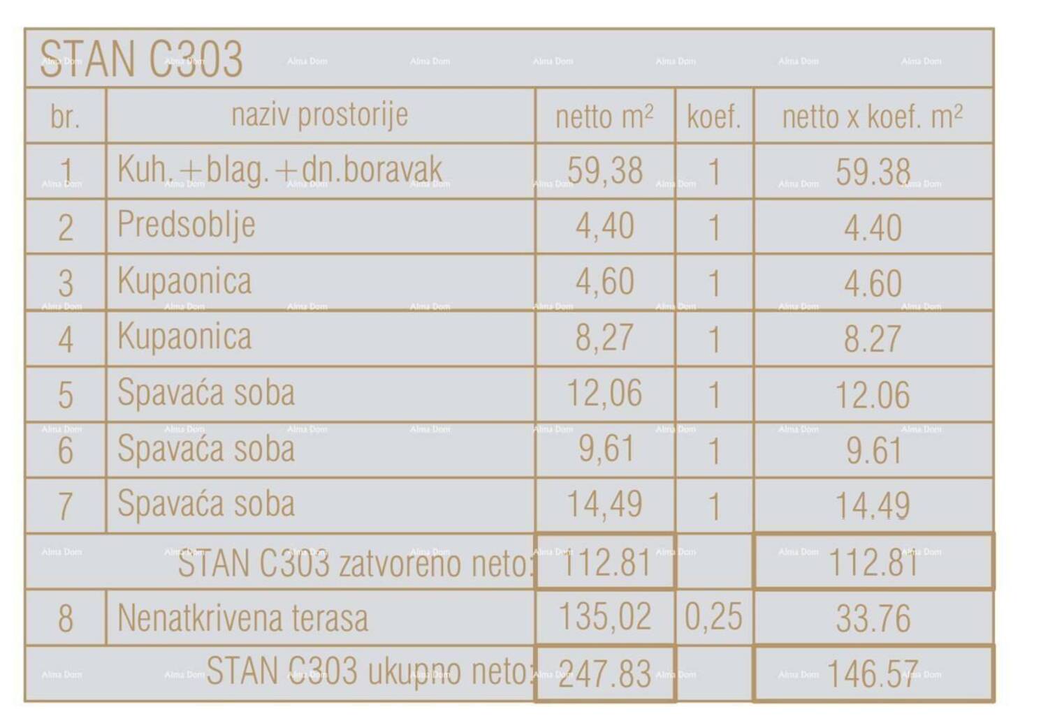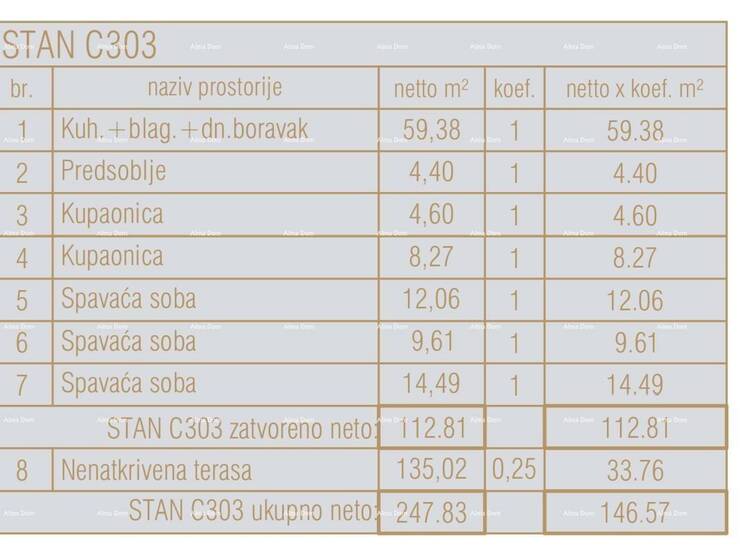 Stan C303, nalazi se na 3.katu centralne jedinice zgrade i sastoji se od: