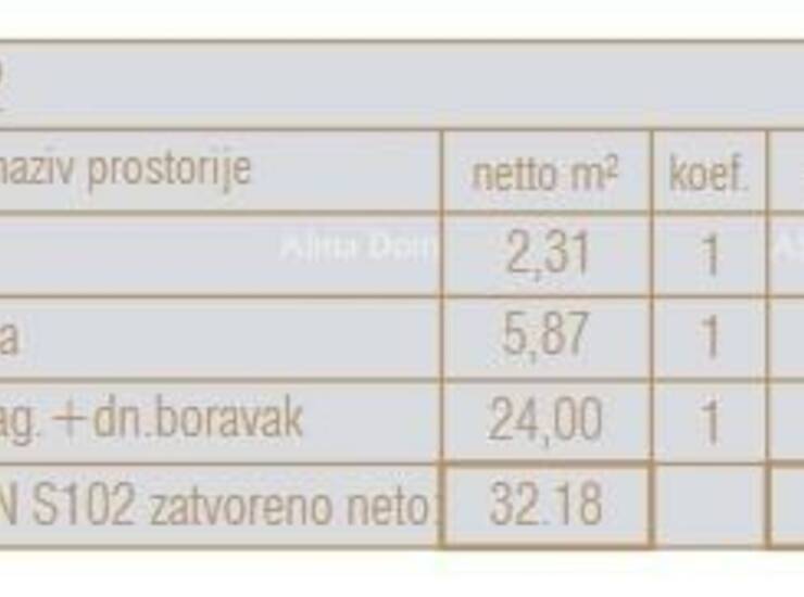 Garsonijera S102 sastoji se od hodnika, dnevnog boravka s kuhinjom i blagovaonicom, te kupaonice.