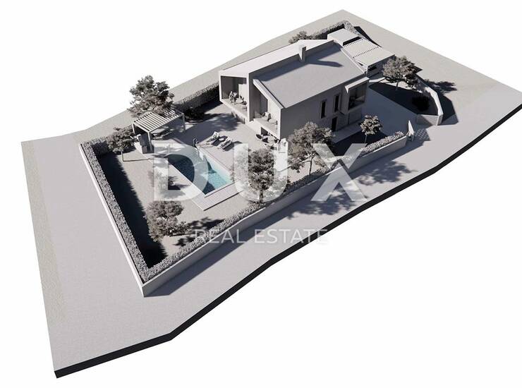Zemljište dolazi s projektnom dokumentacijom za elegantnu vilu suvremenog dizajna, pomno osmišljenu kako bi pružila maksimalnu udobnost, funkcionalnost i privatnost. Planirana vila prostire se na dvije etaže, s prostranim i svijetlim interijerima te optimalnim rasporedom prostorija. Velike staklene stijene i otvoreni koncept dnevnog boravka omogućuju obilje prirodnog svjetla i nesmetan pogled na okoliš.
