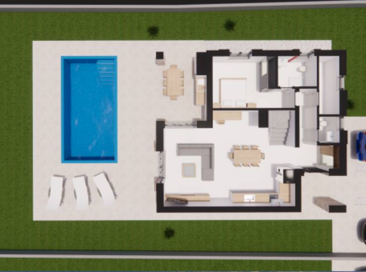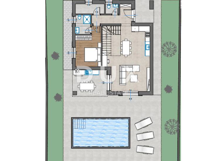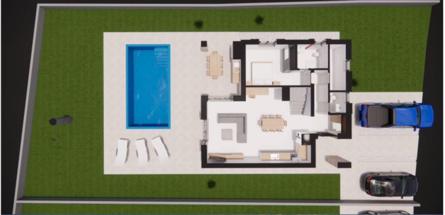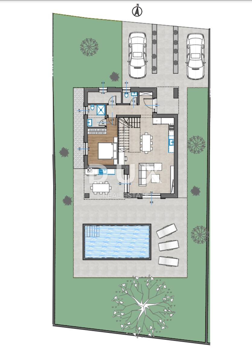 Ima građevinsku dozvolu za kuću s bazenom veličine 135 m2 koja se prostire na prizemlje i kat.