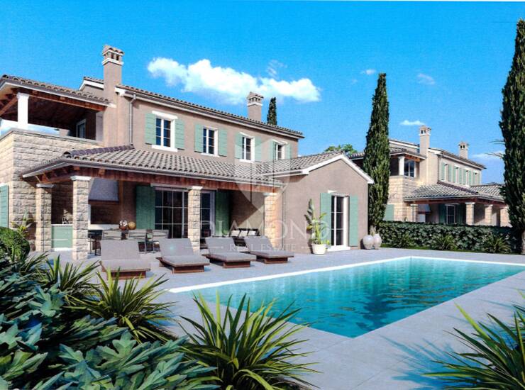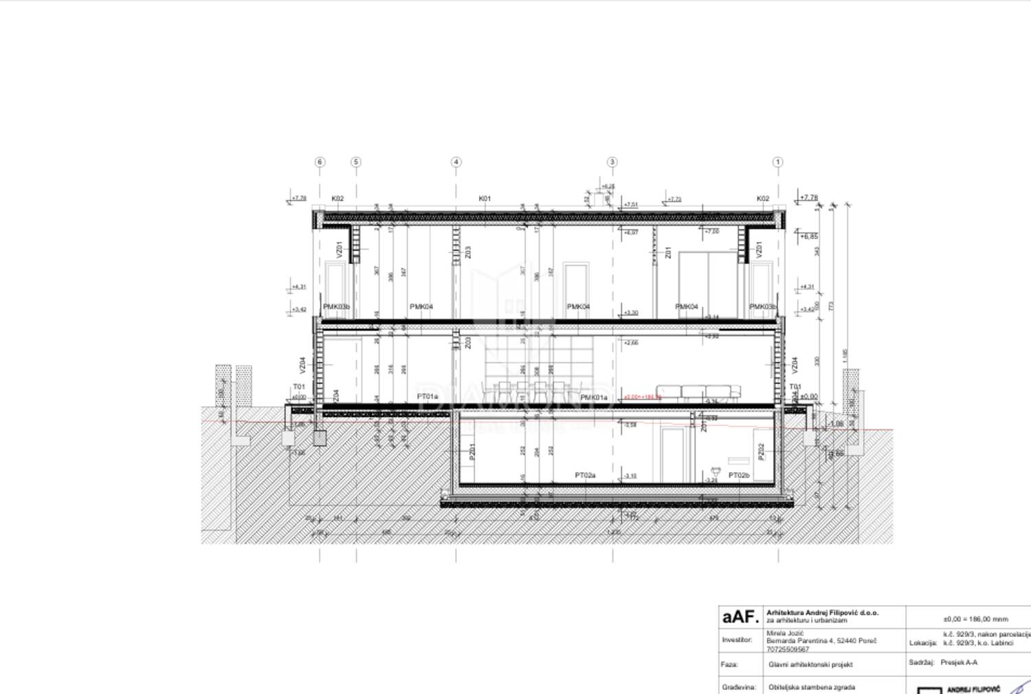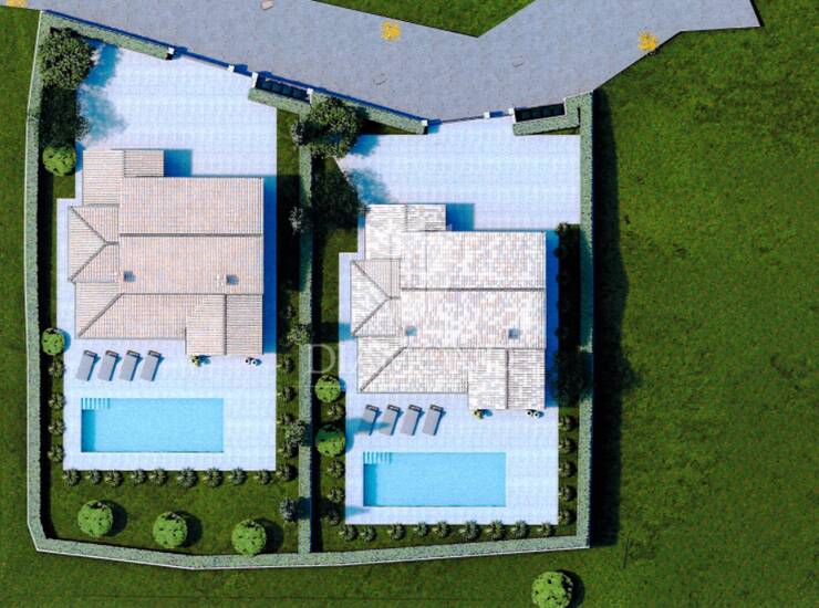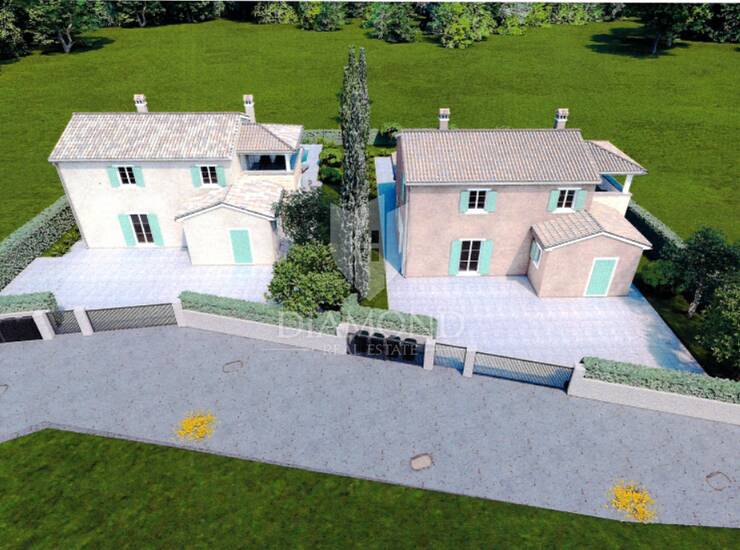 U okolici Poreča, na mirnoj i atraktivnoj lokaciji, prodaje se građevinsko zemljište površine 775 m² s važećom građevinskom dozvolom i projektom za gradnju moderne vile s bazenom.