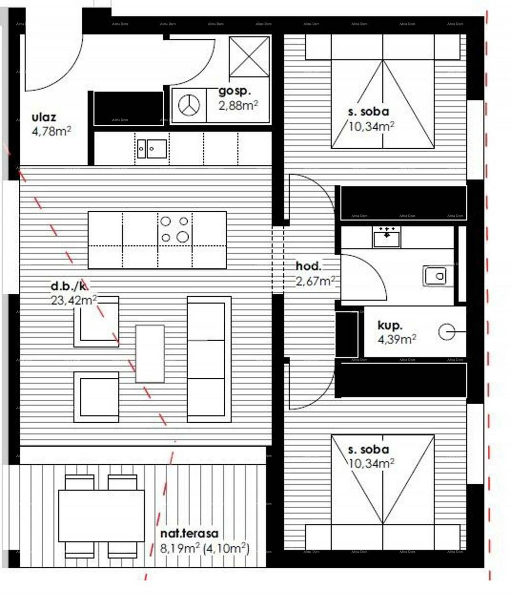 svaki stan ima lođu, spremište i vlastito parkirno mjesto