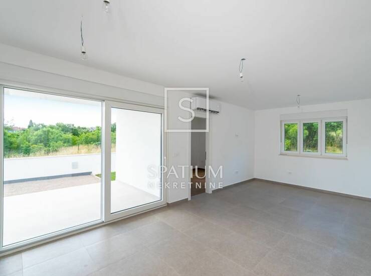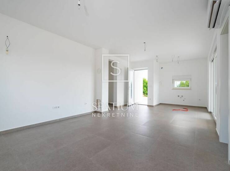 POSEDARJE, u ponudu smo dobili novoizgrađenu kuću s dvije stambene jedinice, svaka čini jednu etažu. Stan u prizemlju sastoji se od ulaza, predsoblja, kupaonice, dvije spavaće sobe, dnevnog boravka, lođe i terase. Ukupna stambena površina iznosi 69,28 m2. Stan na prvom katu sastoji se od stubišta, ulaza, hodnika, kupaonice, dvije spavaće sobe, dnevnog boravka, lođe i terase. Ukupna stambena površina iznosi 75,85 m2. Kuća ima četiri parkirna mjesta, dvorište (90,52 m2) te dijelove vrta i zelenila (59 m2). Ukupna površina kuće sa svim pripadajućim površinama s koeficijentima iznosi 190,3 m2. Izgrađena je od visoko kvalitetnih materijala, postavljena je termo fasada s prirodnim fasadnim kamenom, PVC stolarija s električnim podizačima roleta i komarnicima, multi split klima uređaji te vrhunska keramika i sanitarije u kupaonici. Nekretnina se nalazi na veoma mirnom mjestu, s pogledom na zelenilo i more, a udaljena je od prve pješčane plaže samo 500 m. Odlična prilika za investiciju u svrhu turizma ili kao opcija za život obitelji. Za napomenuti je da je cijela kuća trenutno u fazi etažiranja te će po projektu svakom stanu pripasti dva parkirna mjesta i dio okućnice te će isto biti uvedeno u vlasnički list.