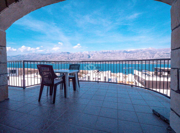 Stan na 2. katu s natkrivenim balkonom i pogledom na more u Vinjercu