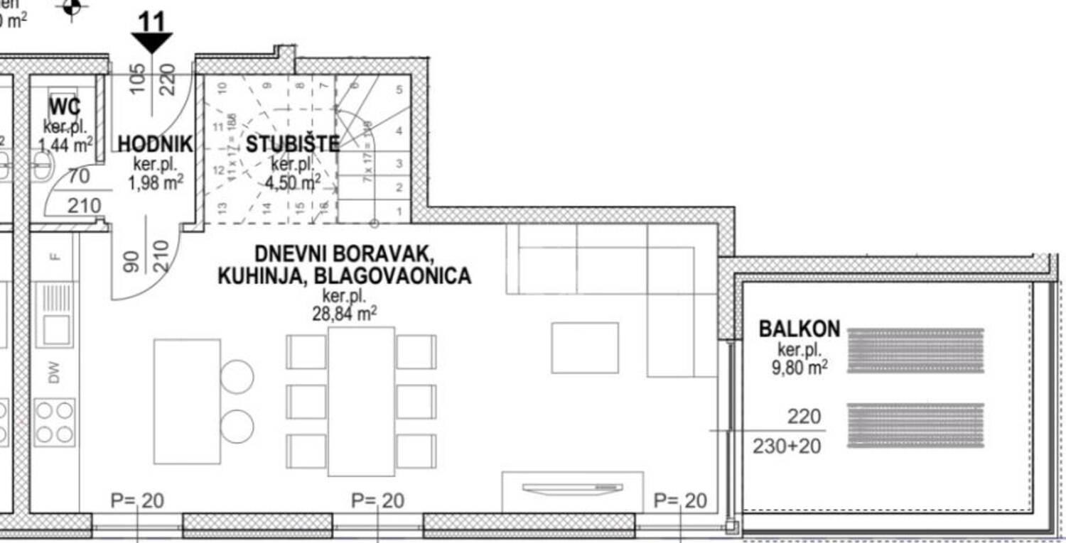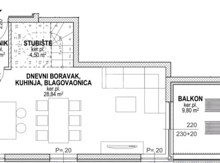 dnevnog boravka/blagovaone/kuhinje:28,84m2