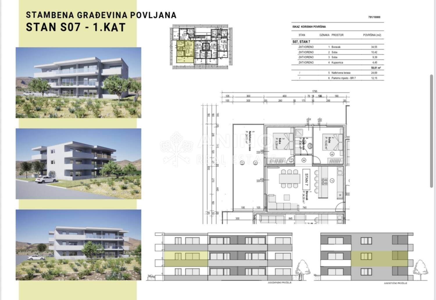 Luksuzni trosoban stan s terasom i parkingom S07– Povljana Hrščice, blizu p