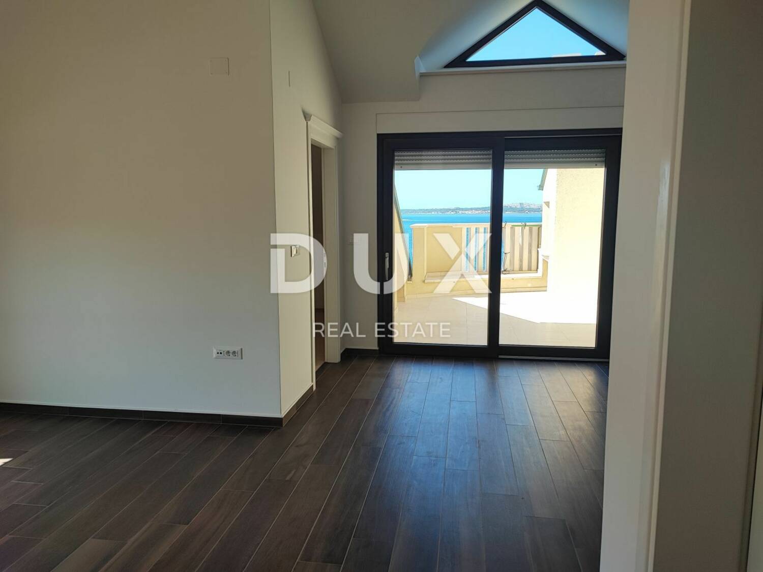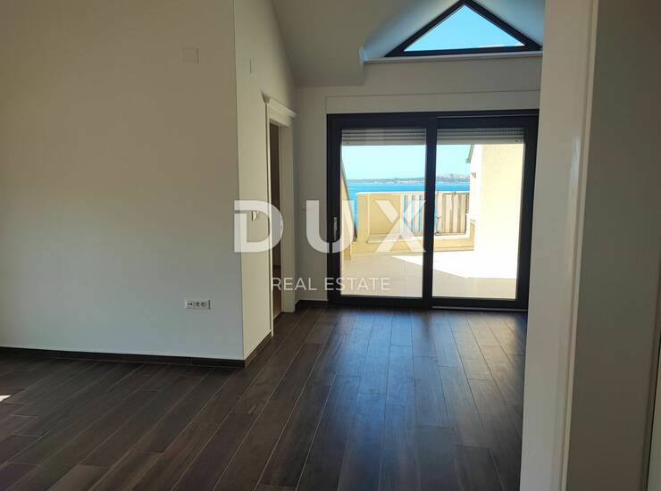 Prodaje se ovaj odličan 3s+db stan H na drugom katu-visoko potkrovlje u visokokvalitetnoj novogradnji na fenomenalnoj lokaciji u prvom redu do mora. Stan je koncepiran kao trosobni te se sastoji od ulaznog hodnika, kuhinje s blagovaonicom i dnevnim djelom s izlazom na terasu, tri spavaće sobe i dva kupatila, sveukupne površine od 113m2. S terase se pruža predivan pogled na more i akvatorij, također na terasi nalazimo uzidani roštilj, pripada mu jedno parkirno mjesto u vlasništvu.