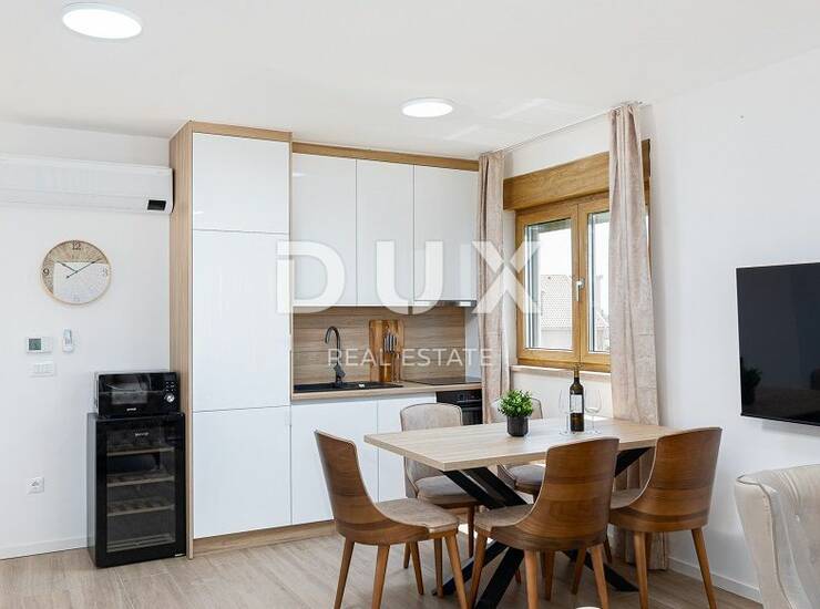 Na samo 10 metara od plaže, ovaj moderno uređen apartman nudi udobnost tijekom cijele godine. Sustav podnog grijanja i klimatizacije povezan na dizalicu topline osigurava grijanje, hlađenje i toplu vodu uz minimalne troškove.