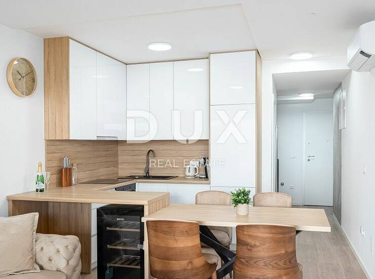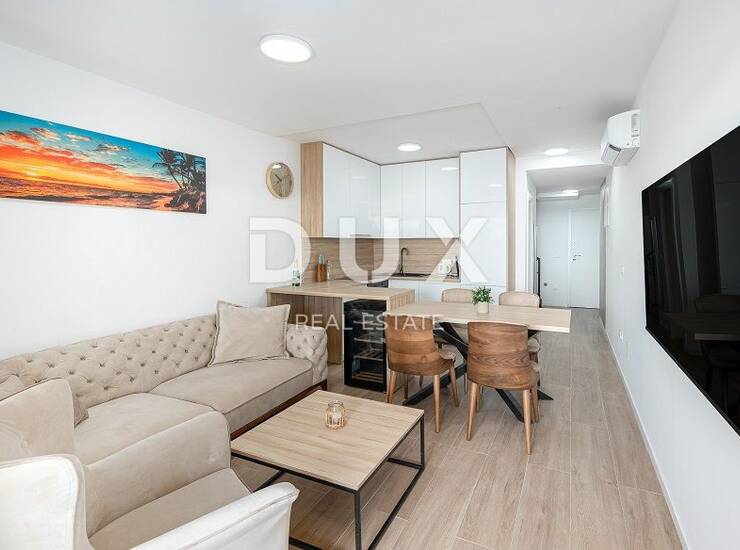 Ovaj apartman nije poseban samo zbog svoje lokacije – iako je plaža doslovno na nekoliko koraka – već i zbog pažljivo osmišljene udobnosti za svakodnevni život ili odmor. Ugrađen je sustav podnog grijanja i klimatizacije povezan na dizalicu topline, što znači da imate grijanje, hlađenje i toplu vodu tijekom cijele godine – sve preko jednog učinkovitog i štedljivog sustava.