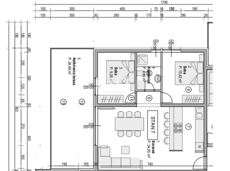 Terasa: Prostrana natkrivena terasa od čak 24,69 m² – idealna za uživanje u ljetnim večerima.