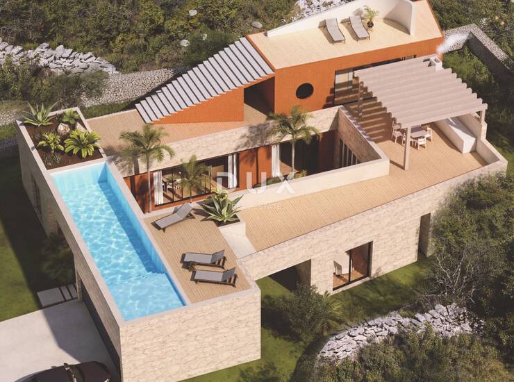 Ideja vizualizacije je vila s 4 spavaće sobe, 3 luksuzne kupaonice, te bazenom i bogatim vanjskim sadržajem s panoramskim pogledom na more!