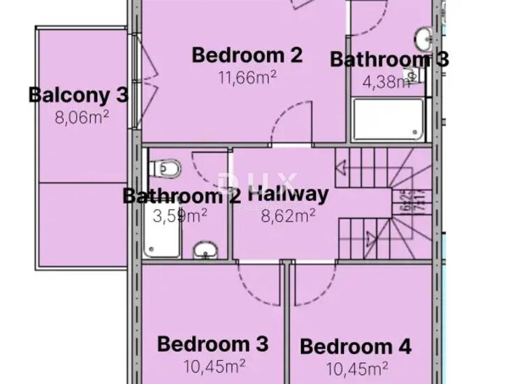 Vila se prostire na ukupno 210 m², raspoređenih na četiri funkcionalno povezane razine. Prostor je pažljivo osmišljen kako bi ponudio ravnotežu između otvorenih, svijetlih zajedničkih prostora i privatnih zona za odmor. Tri prostrane spavaće sobe i tri elegantno uređene kupaonice pružaju visoku razinu udobnosti, dok dnevni boravak s kuhinjom i blagovaonicom stvara prirodno središte doma, povezano s vanjskim prostorima i balkonima.