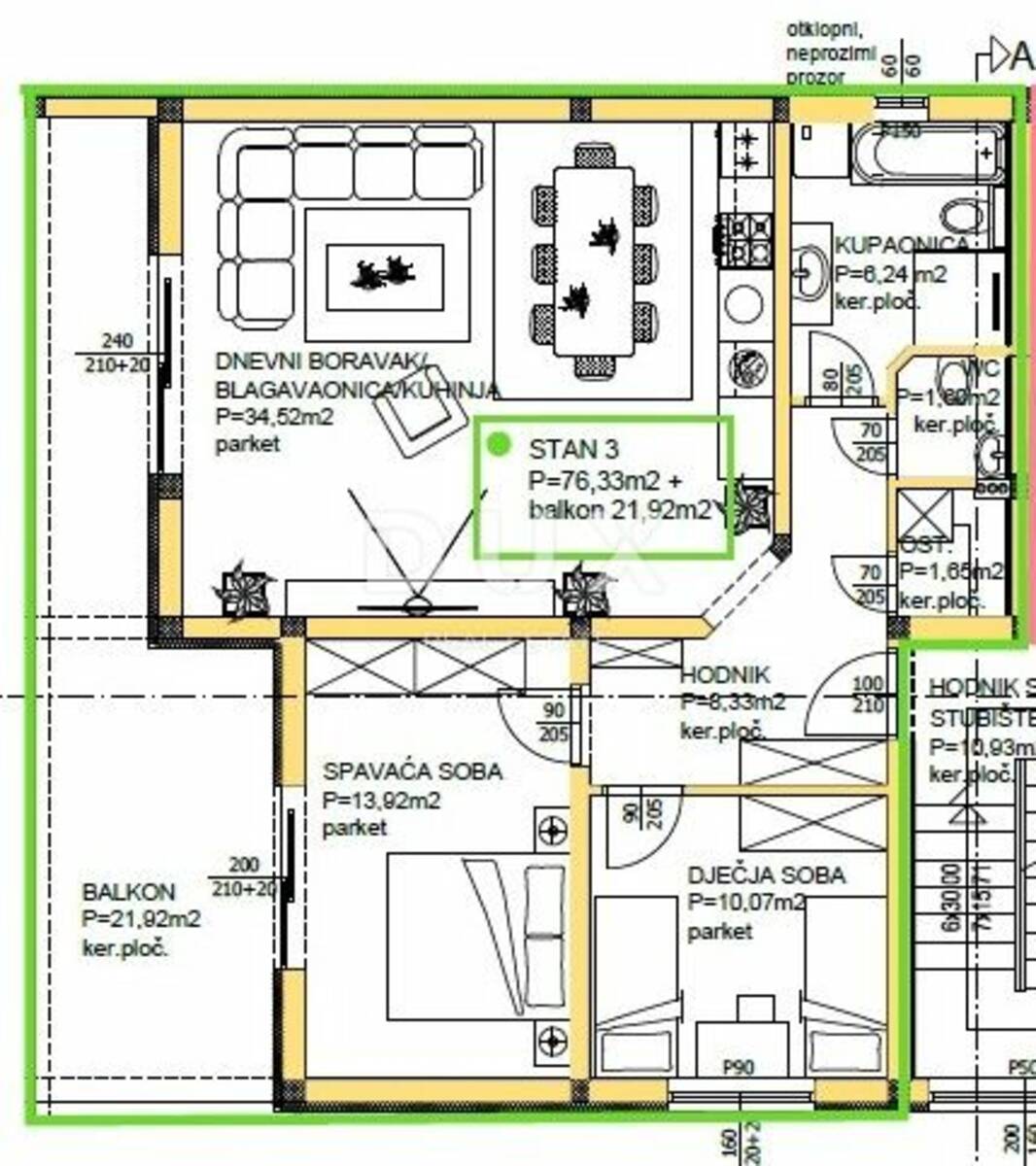 Predstavljamo vam novoizgrađeni stan u Privlaci pored Zadra. Stan se sastoji od predsoblja, dnevnog prostora s kuhinjom i blagovaonicom, ostave, dvije spavaće sobe, kupaonice, wc-a, balkona, vrta i jednog parkirnog mjesta s priključkom za električni automobil. Svi stanovi u zgradi su izgrađeni od visokokvalitetnih materijala.