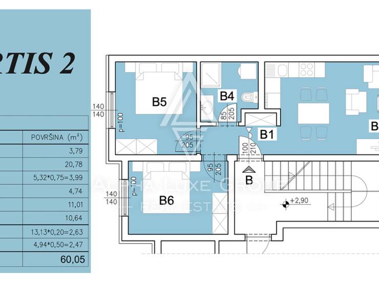 Raspored je funkcionalan i pažljivo organiziran, a uključuje ugodan dnevni boravak povezan s kuhinjom i blagovaonicom, stvarajući praktičan open space prostor idealan za svakodnevni život. Stan se sastoji od dvije spavaće sobe, kupaonice i hodnika, a svi prostori su raspoređeni kako bi se osigurala maksimalna iskoristivost i ugodno životno okruženje. Lođa pruža opuštajući vanjski prostor, savršen za uživanje na svježem zraku i mirne trenutke.