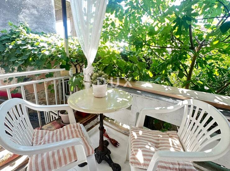 Poseban šarm ovoj kući daju dvije predivne terase – jedna natkrivena vinovom lozom, koja tijekom ljetnih mjeseci pruža prirodni hlad, i druga, natkrivena terasa osmišljena kao dnevni boravak na otvorenom, s koje se pruža pogled na zelenilo i krovove starog grada. Idealne su za opuštanje i pijuckanje vina u miru vlastitog doma, usred živopisnog urbanog okruženja.