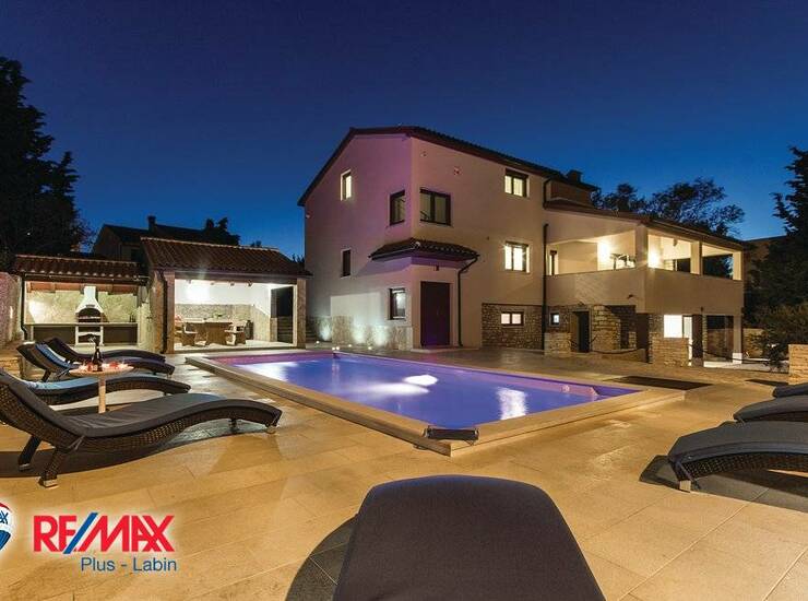 Radi se o kući s 200 m2 stambenog prostora i bazenom od 35 m2 smještenim na parceli velikoj 975 m2. Stambeni se prostor proteže na dvije etaže povezane unutarnjim stepenicama. Kuhinja, blagovaona i dnevni boravak čine jednu prostranu cjelinu koja raspolaže izlazim na veliku natkrivenu terasu. Od šest spavaćih soba opremljenim vlastitim televizorima, četiri imaju i vlastitu kupaonicu.